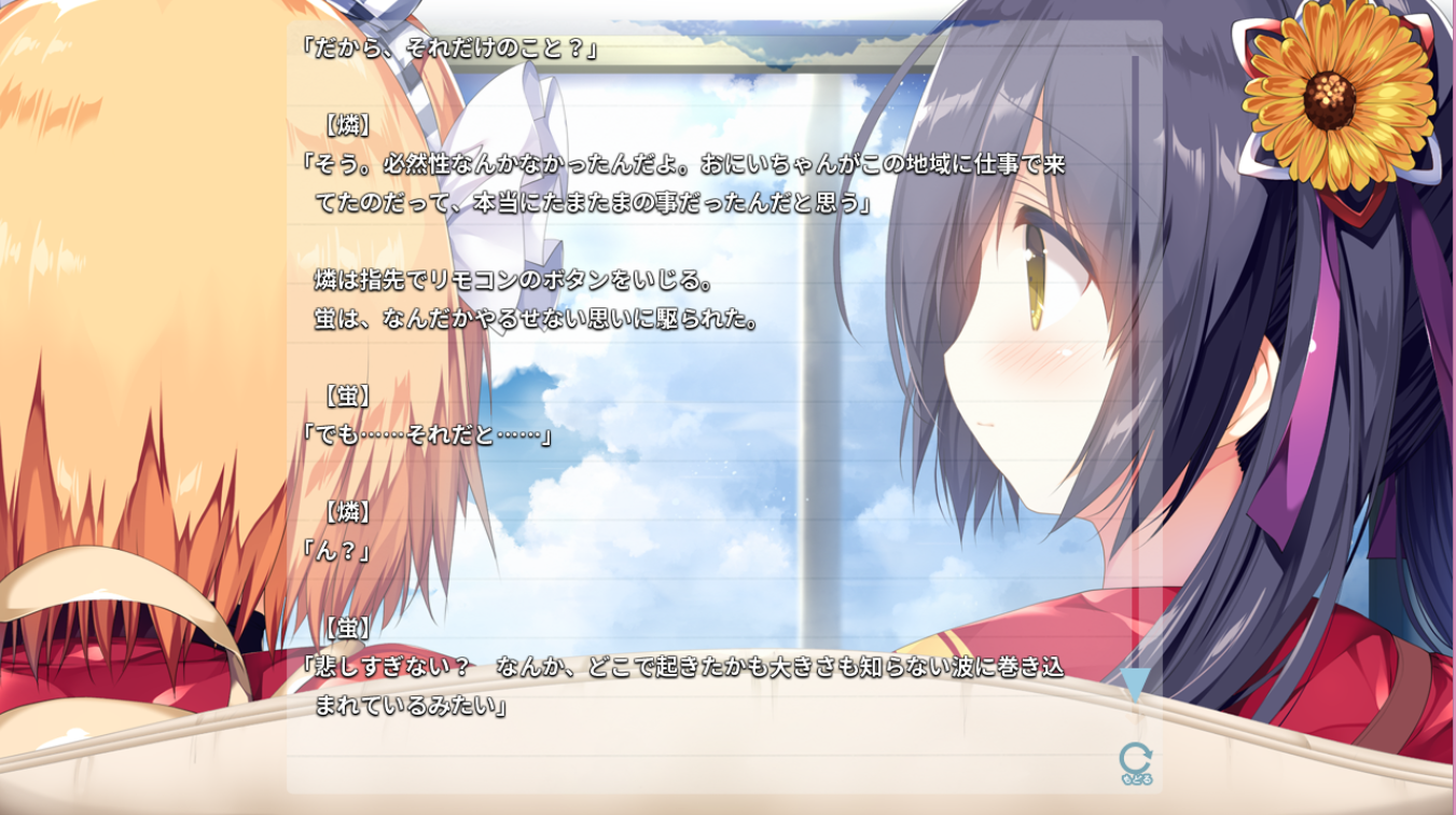 "大切な物を綺麗なままにする(心身ともに)"兄と燐との下りや、オオトモ様のセリフ、その他にも沢山使われていたが、特に両親の関係、兄を失った"燐"は"何も持っていなかった蛍"よりも傷ついたと思います。